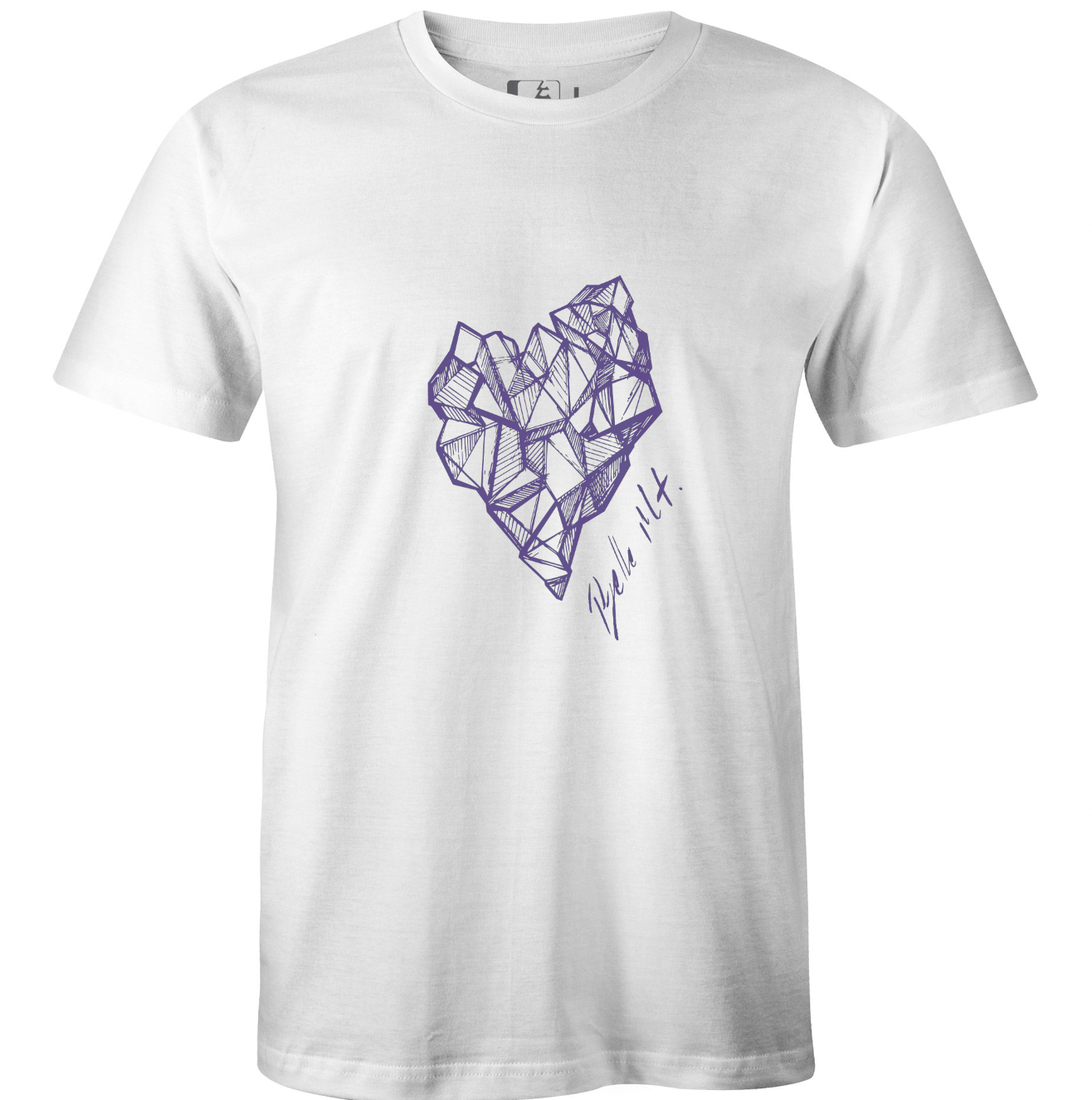 This Vintage or Arctic White short sleeve t-shirt features the Belle Mt. logo with a geometric heart design on the front. These shirts are 100% cotton